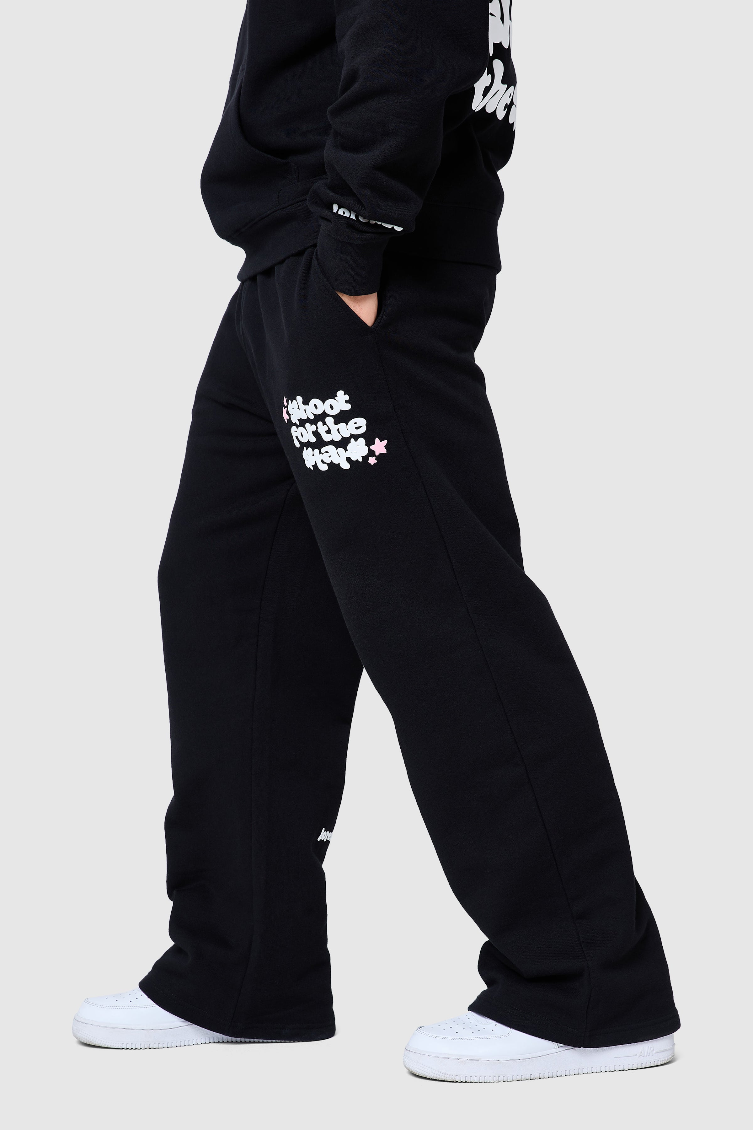 The Shoot For The Stars Jogger features a loose, flared fit with a bold graphic puff print, blending comfort and style effortlessly. Pair with the matching hood for a relaxed, complete look.