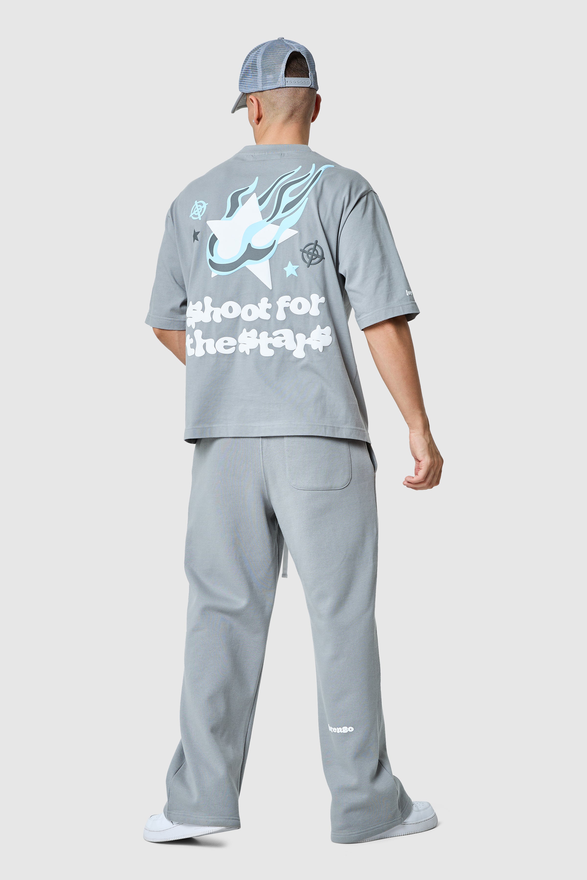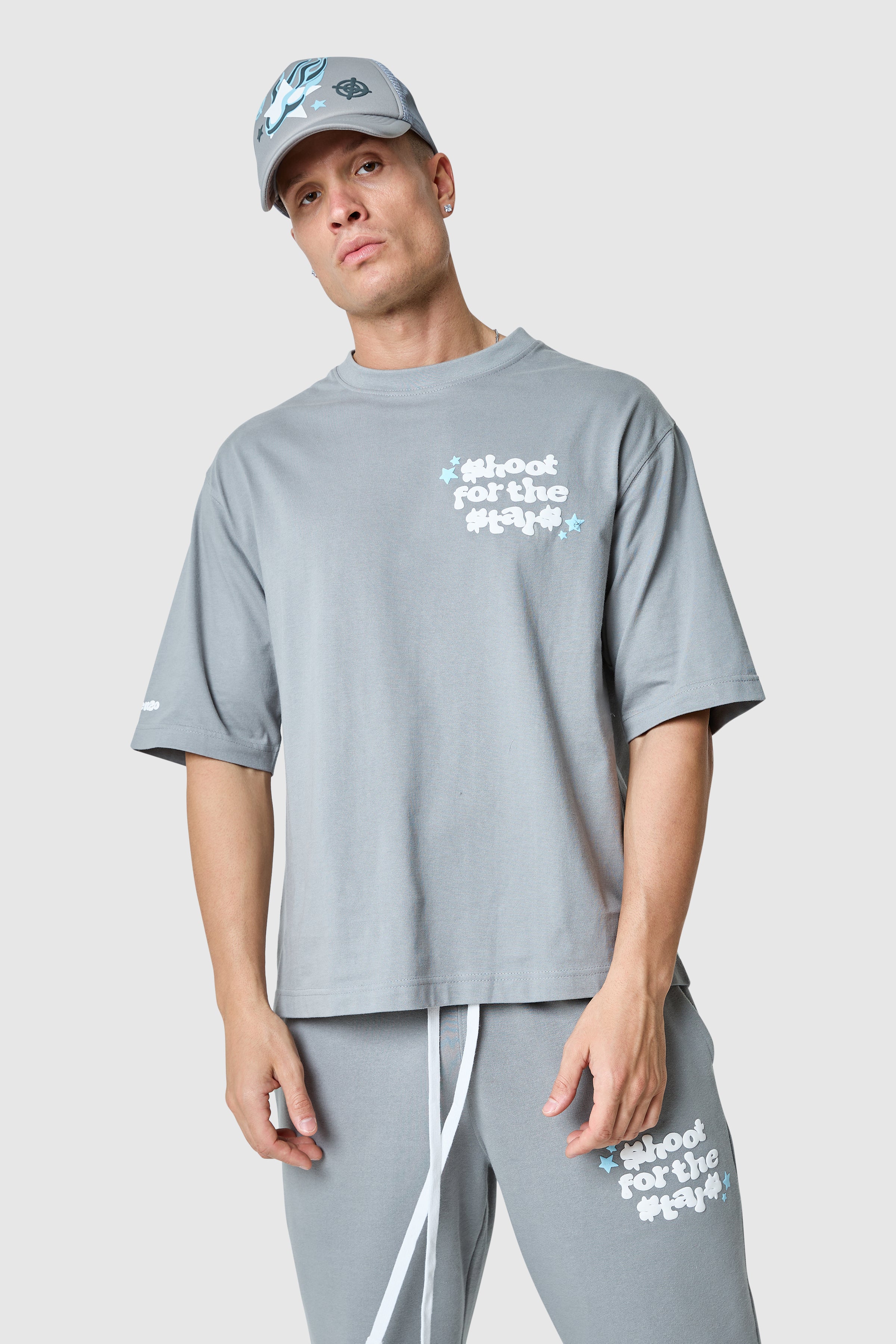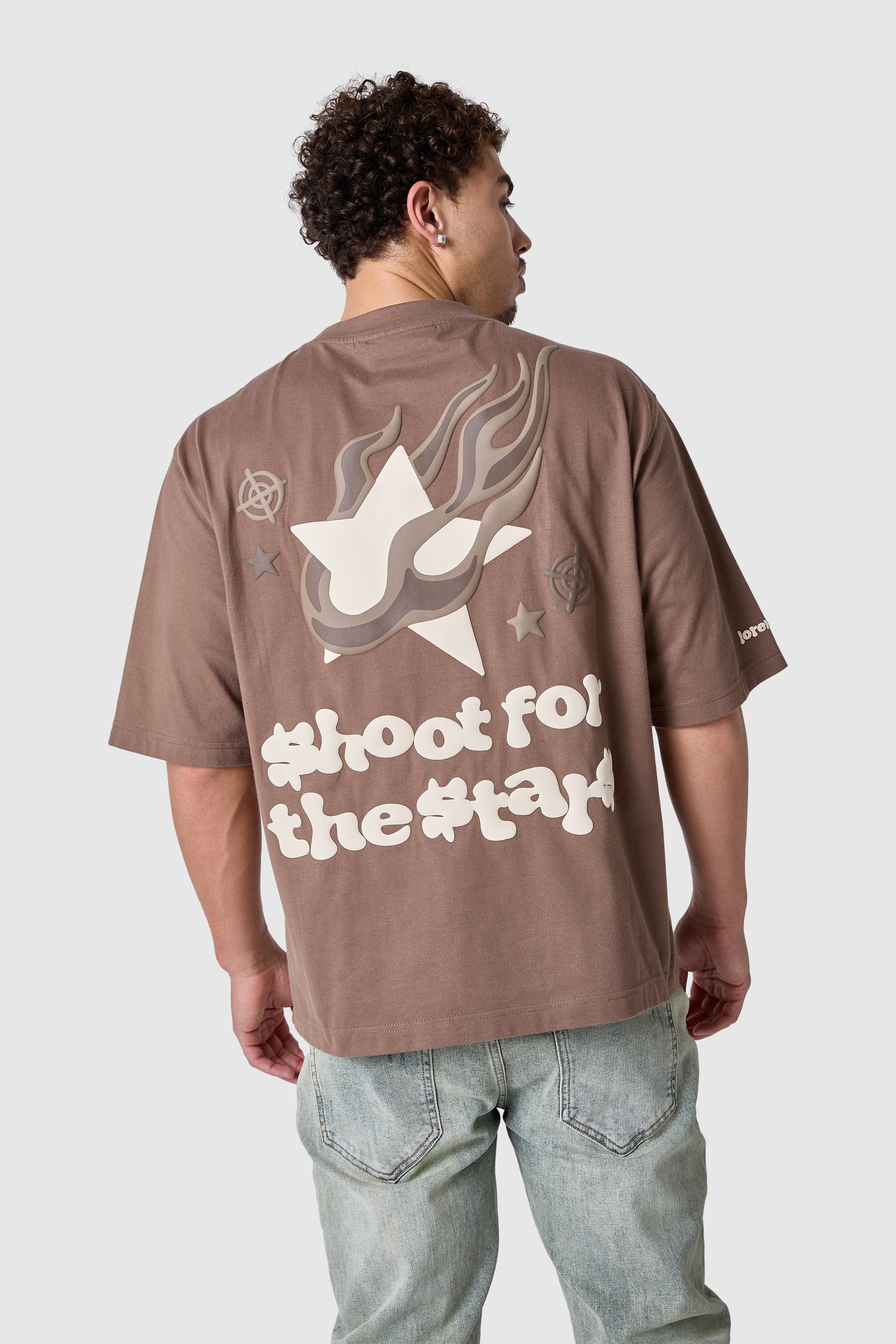 The Shoot For The Stars Tee features an oversized fit with a bold graphic puff print, blending comfort and style effortlessly.