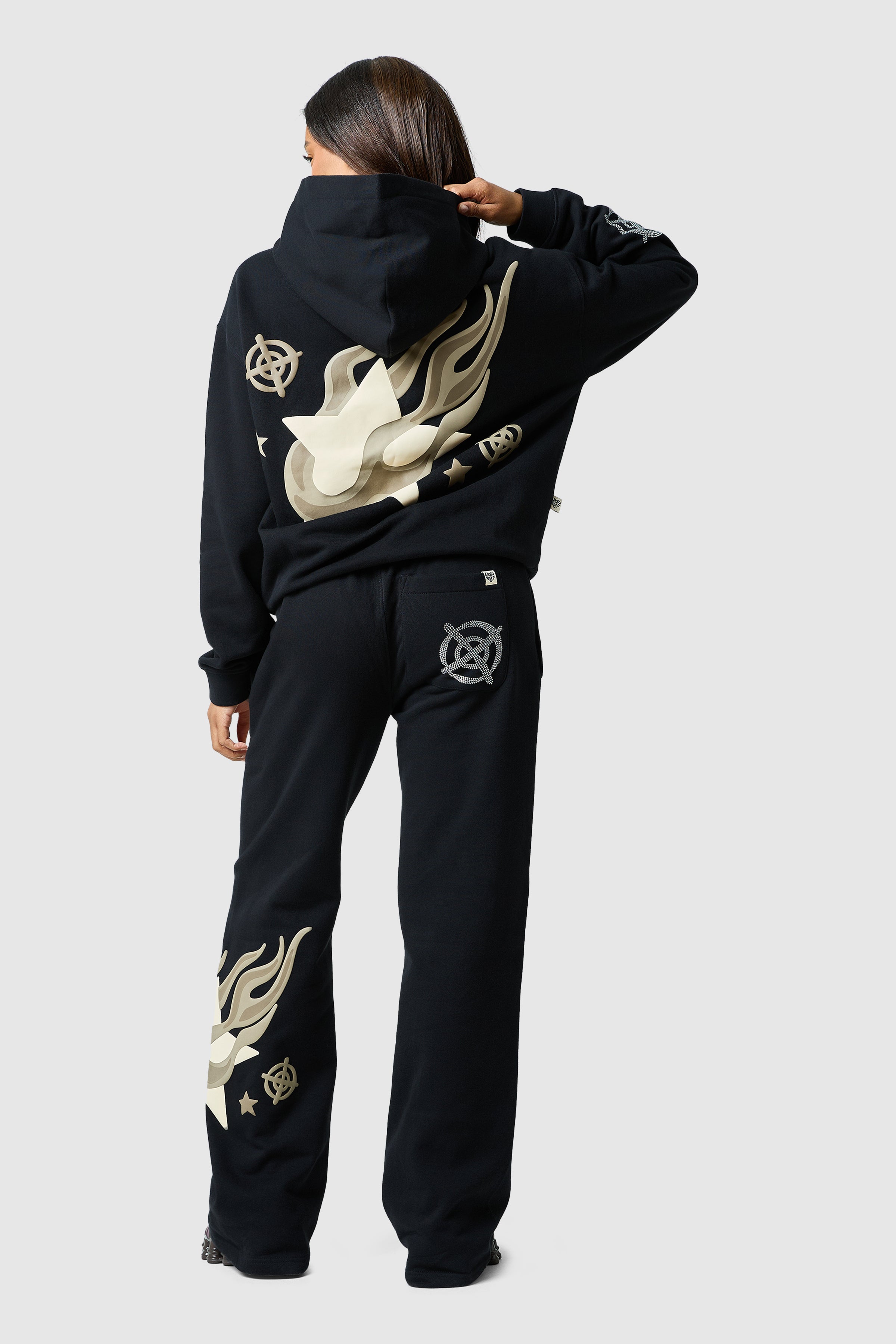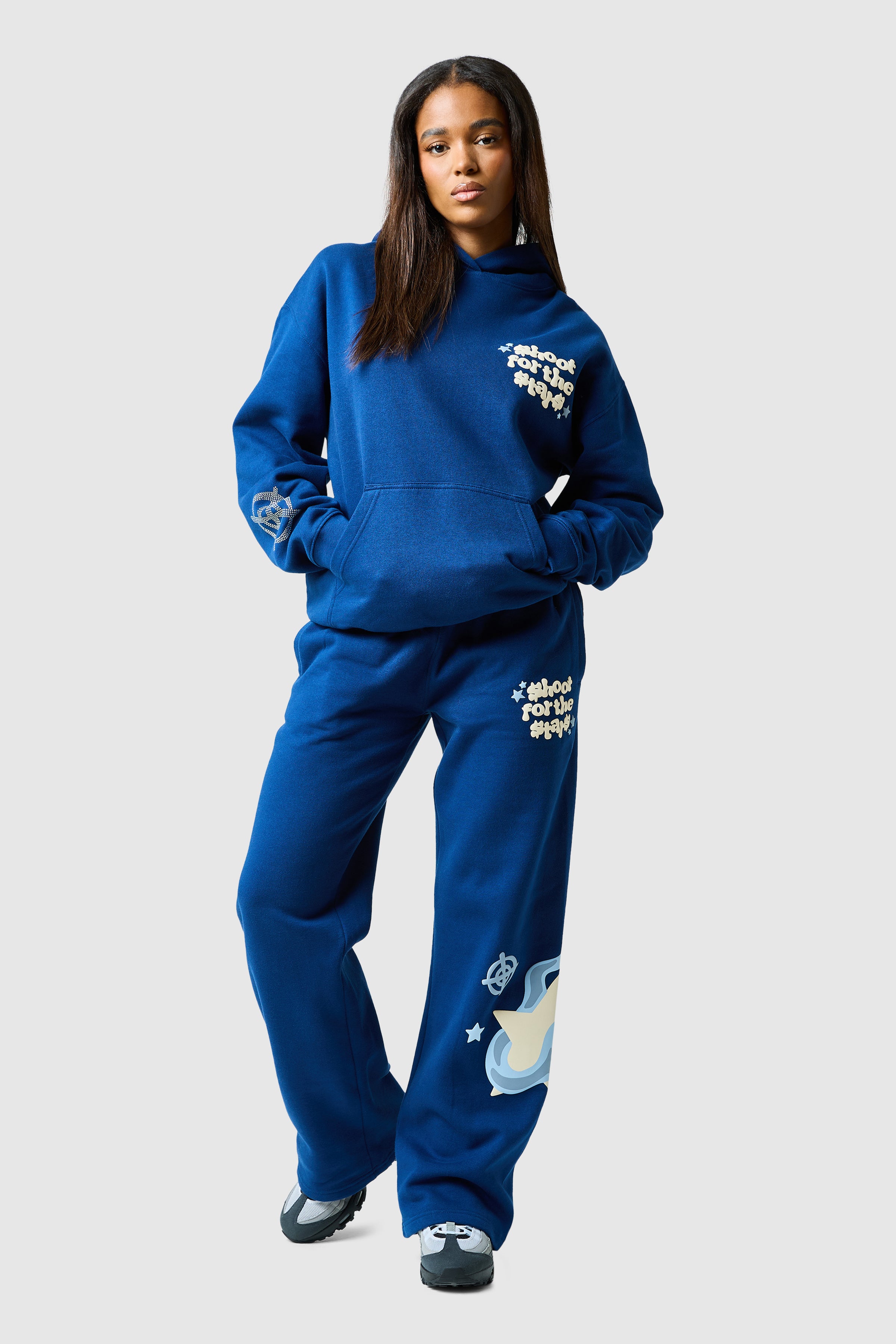 Introducing the Shoot For The Stars Tracksuit. Featuring a bold graphic puff print and ribbed cuffs and hem hood and a wide leg jogger, Shoot for the Stars is a new staple.