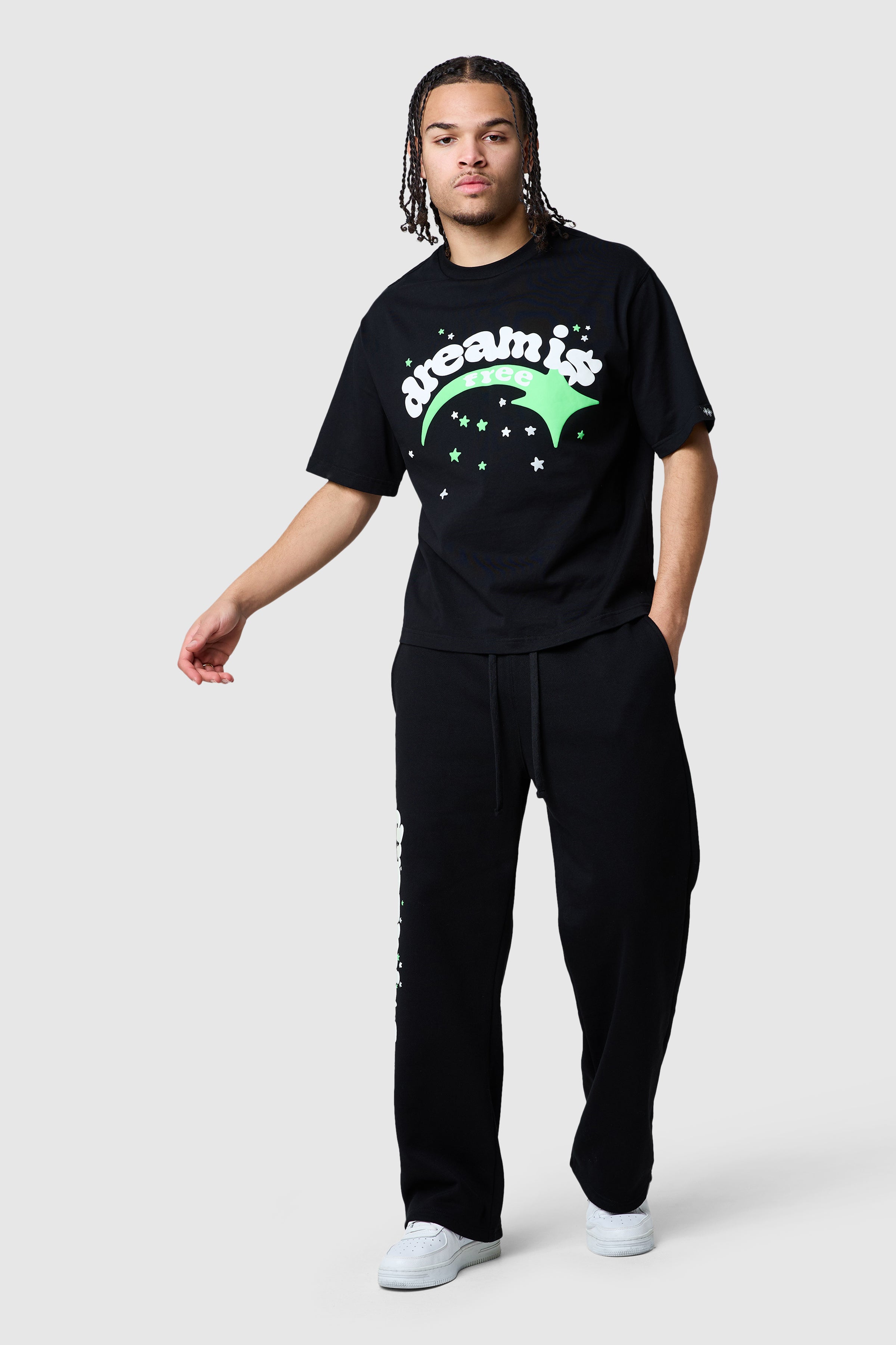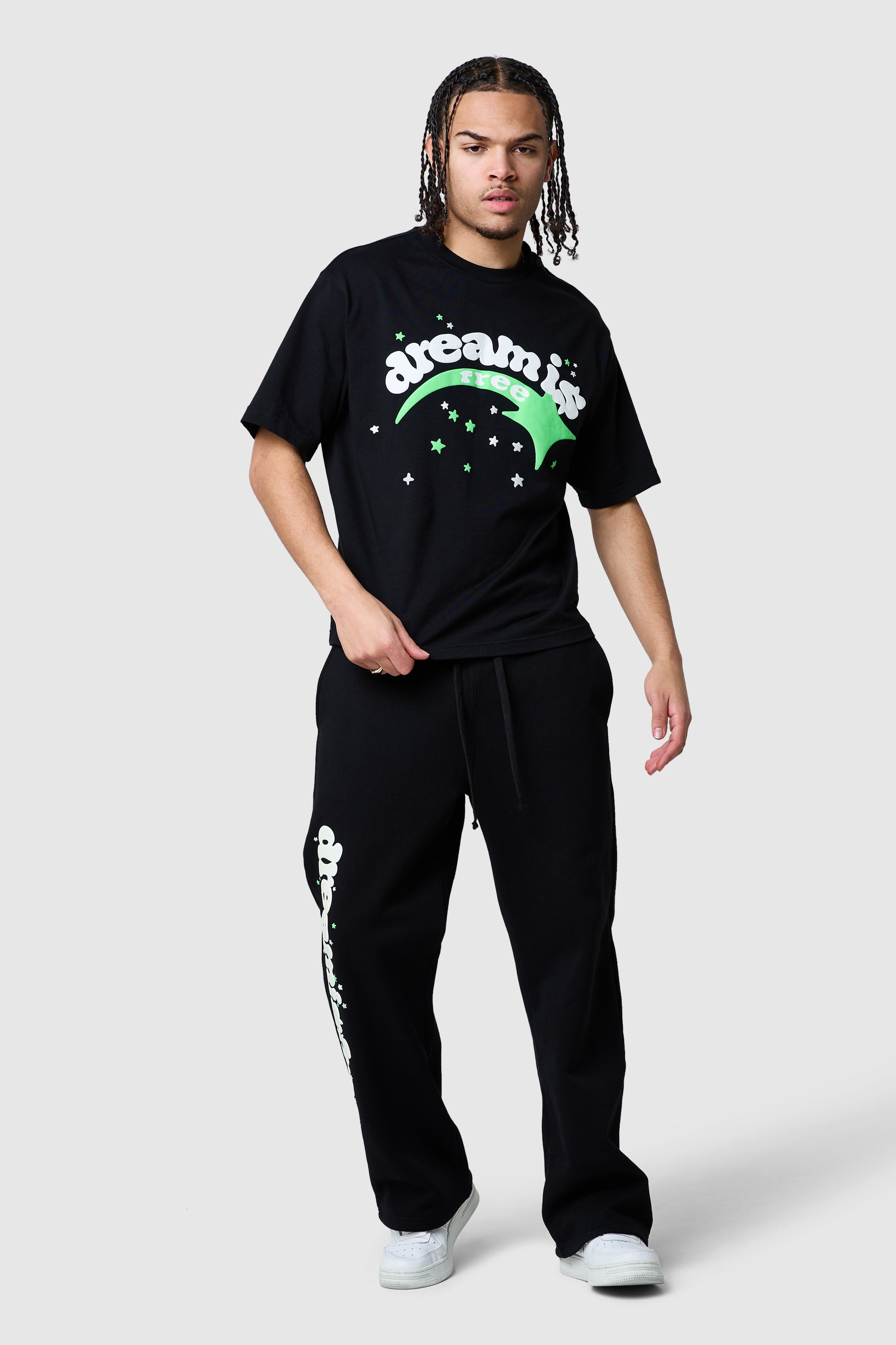 The Shooter Jogger in Grey Marl features a loose fit with a glow in the dark graphic screen print down one leg, blending comfort and style effortlessly. Pair with the matching hood for a relaxed, complete look.